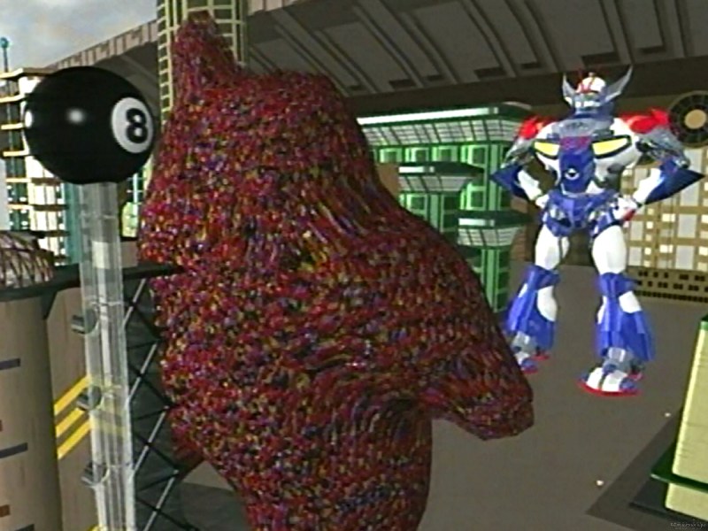 They fought Nullzilla with the giant robot, but didn't gain any ground. In the process they accidentally pushed Nullzilla into the Eight Ball Apartments and crushed the building. Phong told them to use the Disrupt-o-matic, but they told him that they didn't have anything like that. Phong found that the matic was left behind in the launch bay and tells them to contain the monster until he can get the matic to them. AndrAIa is suited up and got into the Disrupt-o-matic, which is a giant axe, and flew to them. Using the matic, the sprites were able to rid Hexadecimal of both the nulls and the strange creature that covered her. Hex's energy was depleted, but Bob said she will be alright. (Nullzilla)