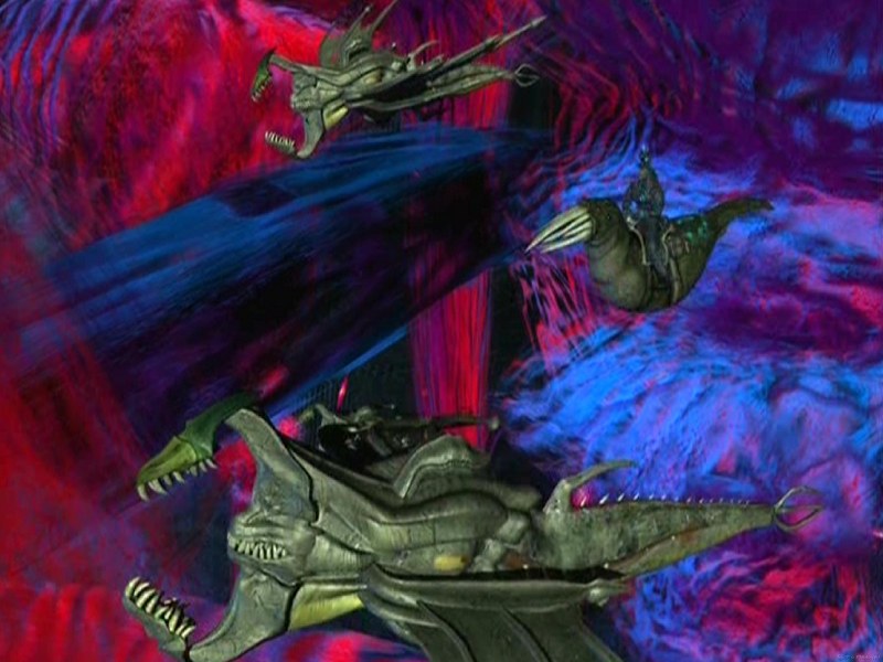 Web Creatures come in several other forms. In an attack, the first wave is Web Probes, smaller pink colored creatures with several tentacles and capable of very fast flight, able to out-maneuver a CPU fighter car. Their sole purpose is to observe and study a System's defense response. If a system should attack anyone of them the rest will flee back to the portal and summon the attack force. Although having limited attack strength they can infect any vehicle they touch. Web Probes can merge in a 'piggyback function' which provides a tremendous speed boost to escape back to the Web.